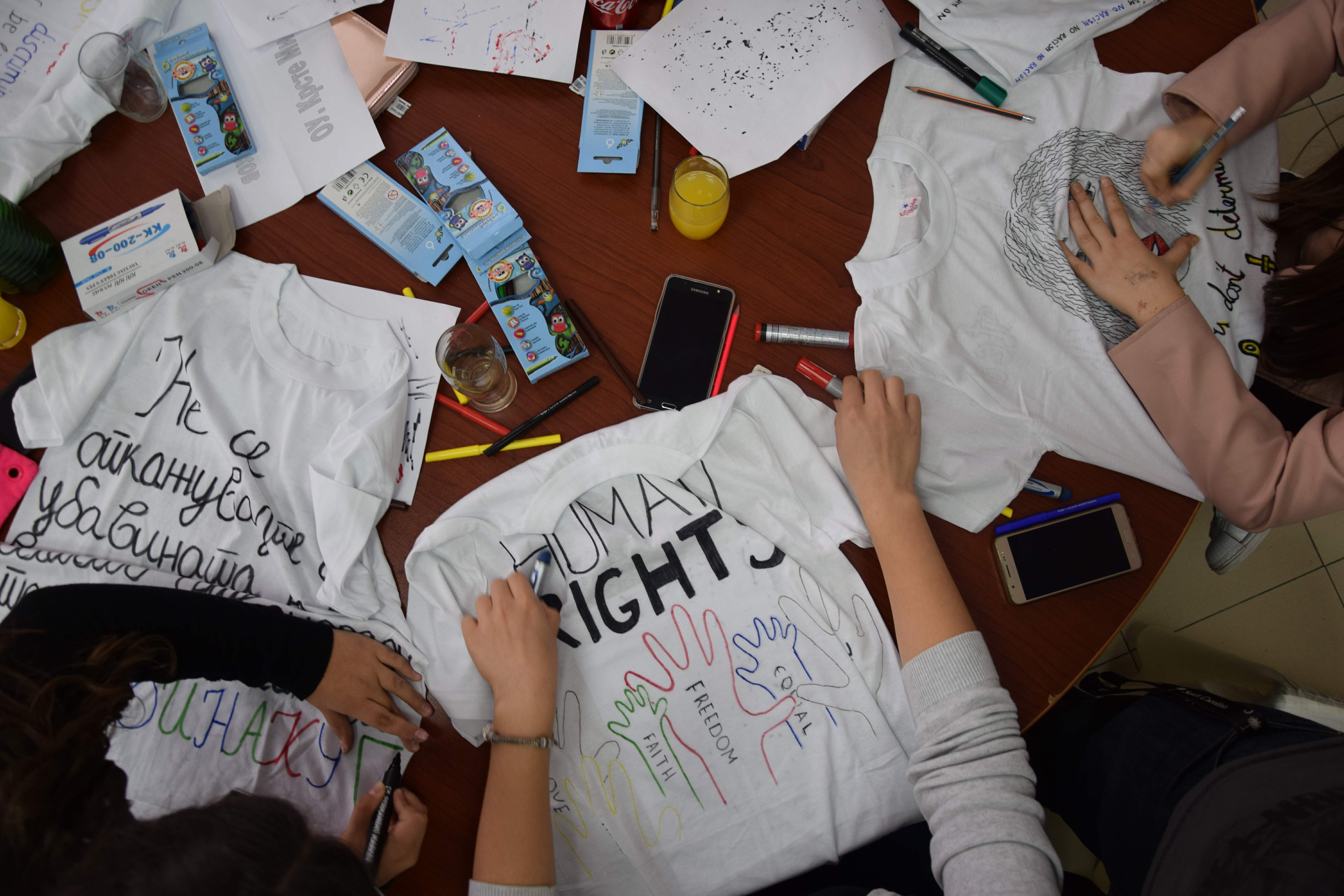 На почетокот од хепенингот можеше да се види како веќе дискуританите и оформени идеи почнуваат да се појавуваат на маиците, со вешто повлечените линии од рацете на талентираните ученици. Насекаде низ просторијата се чвствуваше креативниот занес и сите ученици зафатено ги исцртуваа почетните линии. Нешто подоцна на некои маси се забележуваа вешто исцртани пораки, а на други маси одредени ученици својот талент го искажаа преку слики со прикажани ситуации на кои доминираа фино искомбинираните бои, додека пак кај некои ученици дојдоа до израз талентот и префинетото чувство за исцртување на дадени форми преку кои го искажаа суптилното чувство на својата порака.
