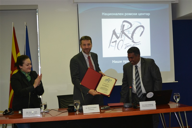 Преставникот на Делегацијата на ЕУ во Скопје, Мауро ди Вероли, упати честитки на Националниот ромски центар за десетгодишната активност и постигнатите успеси, и за имплементираните над 50 проекти во десет години во клучни сектори за инклузивност на ромската заедница, како домување, регистрација, образование и социјална помош.